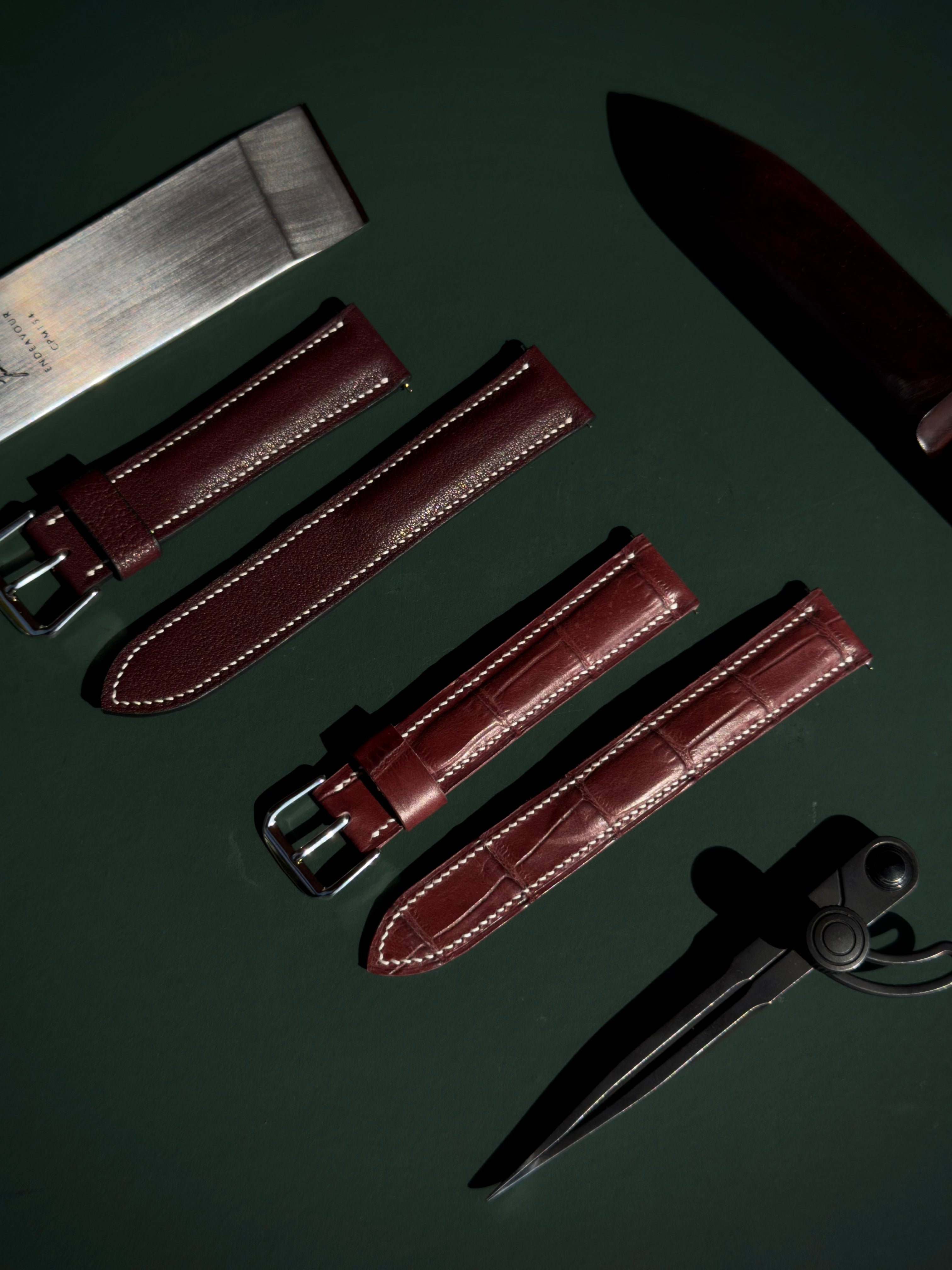 Specializing in bespoke watch straps and small leather goods, we craft pieces entirely by hand, designed to endure for a lifetime. Every item is a result of a slow, deliberate process that utilizes specialized tools and honest techniques that honor the material and the heritage of the craft.